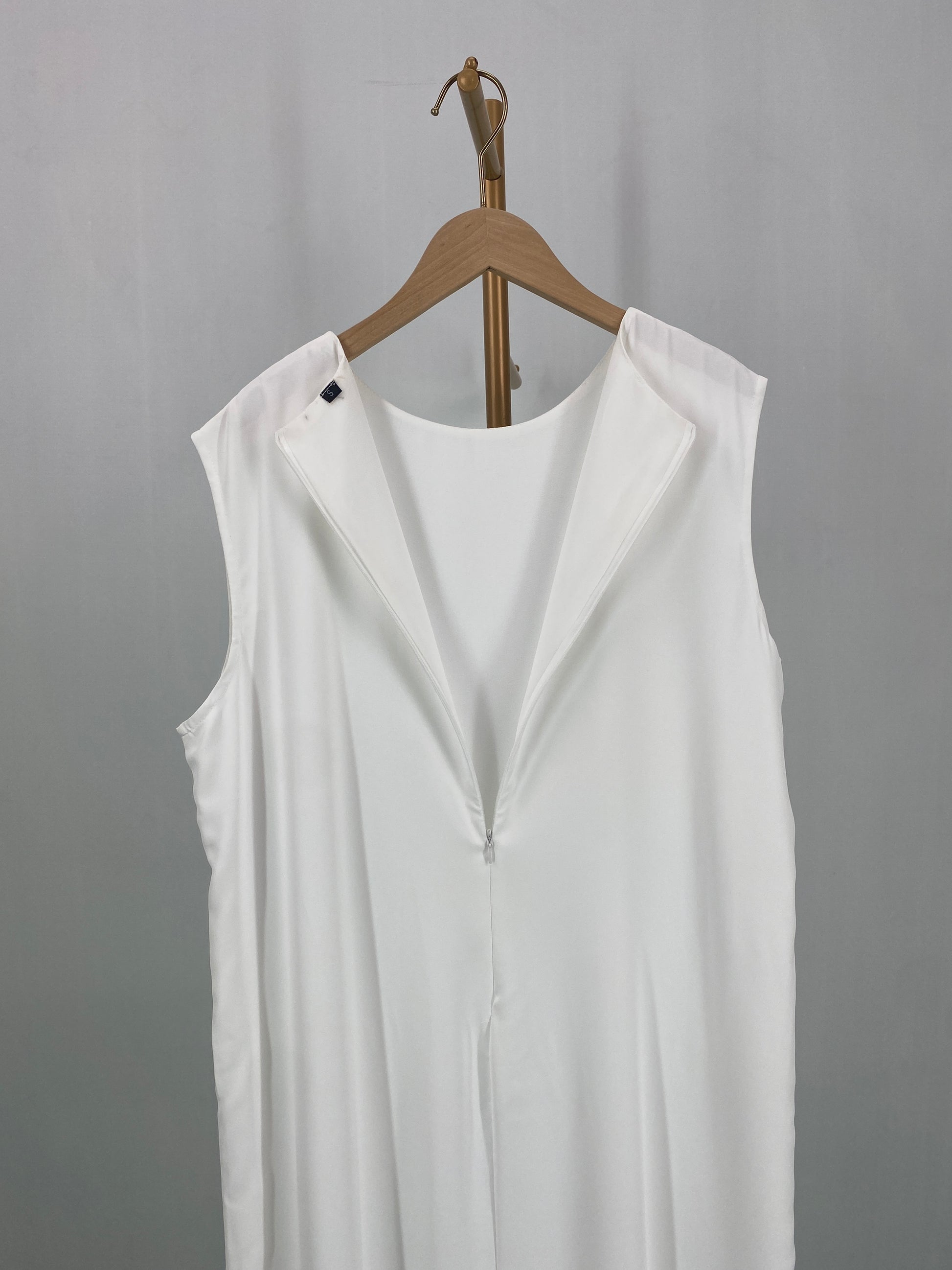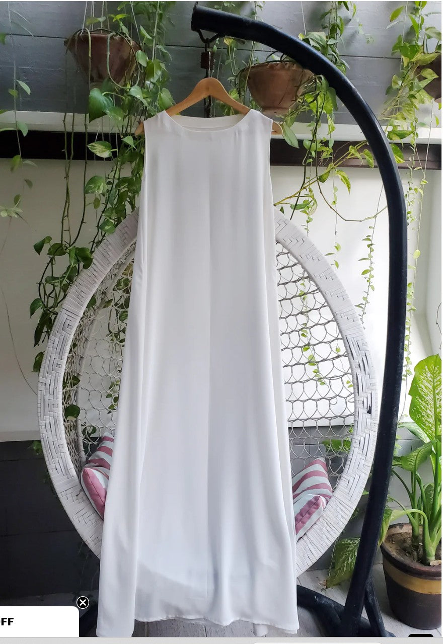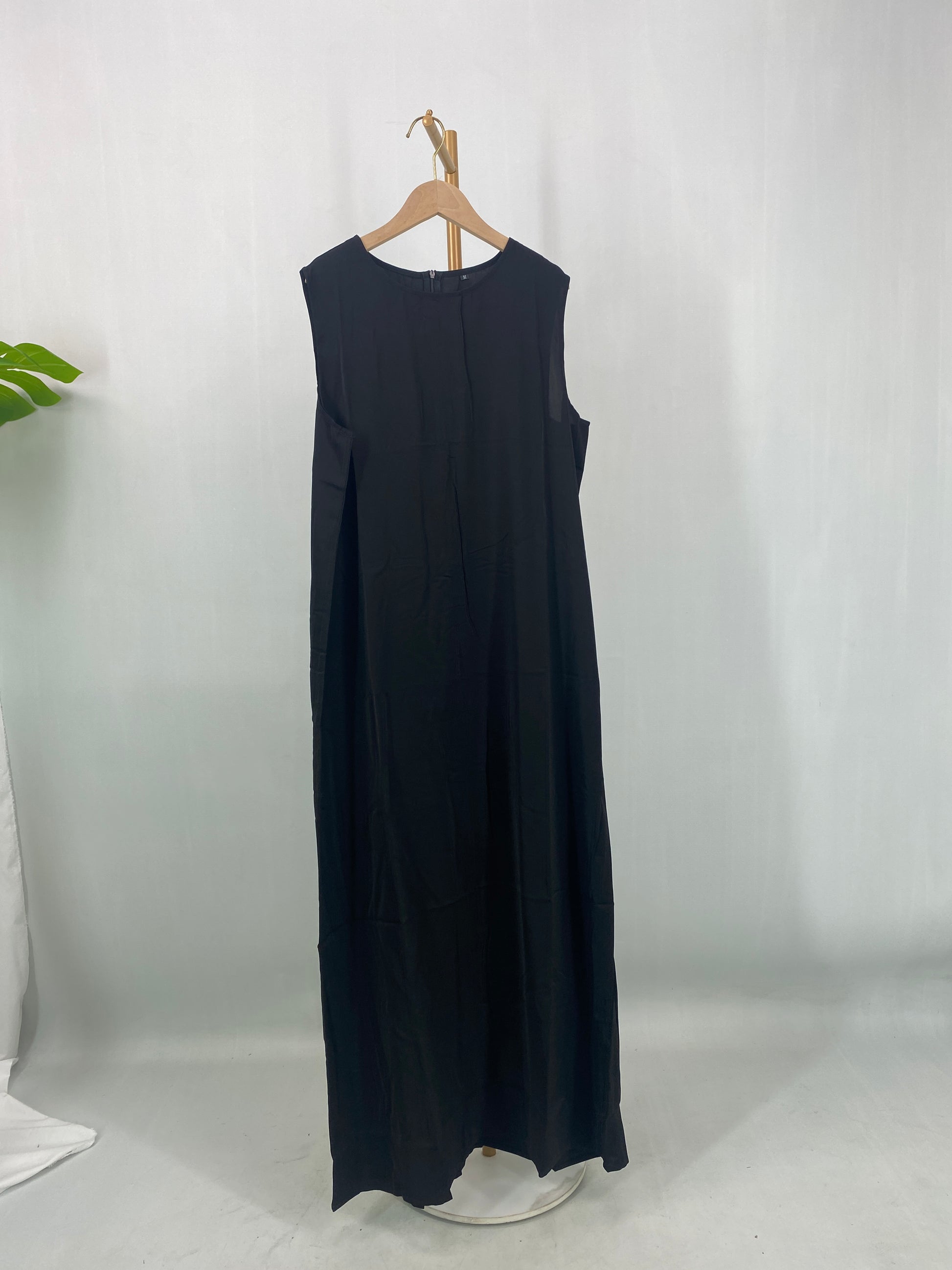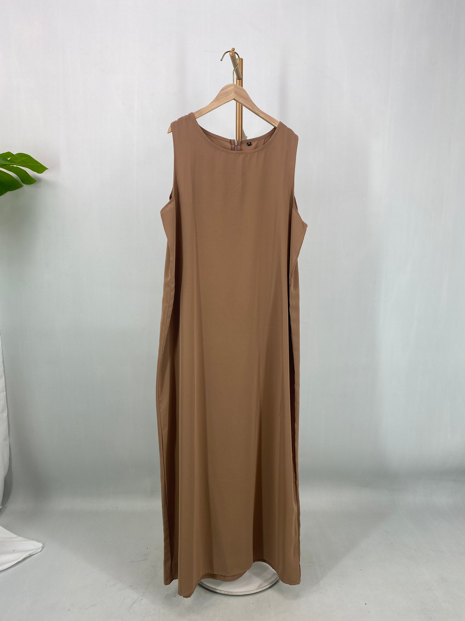 This fabric flows beautifully without clinging, offering a smooth, refined silhouette that feels light on the body while providing full coverage. The sleeveless design allows for effortless layering under open abayas, kimonos, and sheer outer pieces — or can be worn on its own for a clean, minimal look.